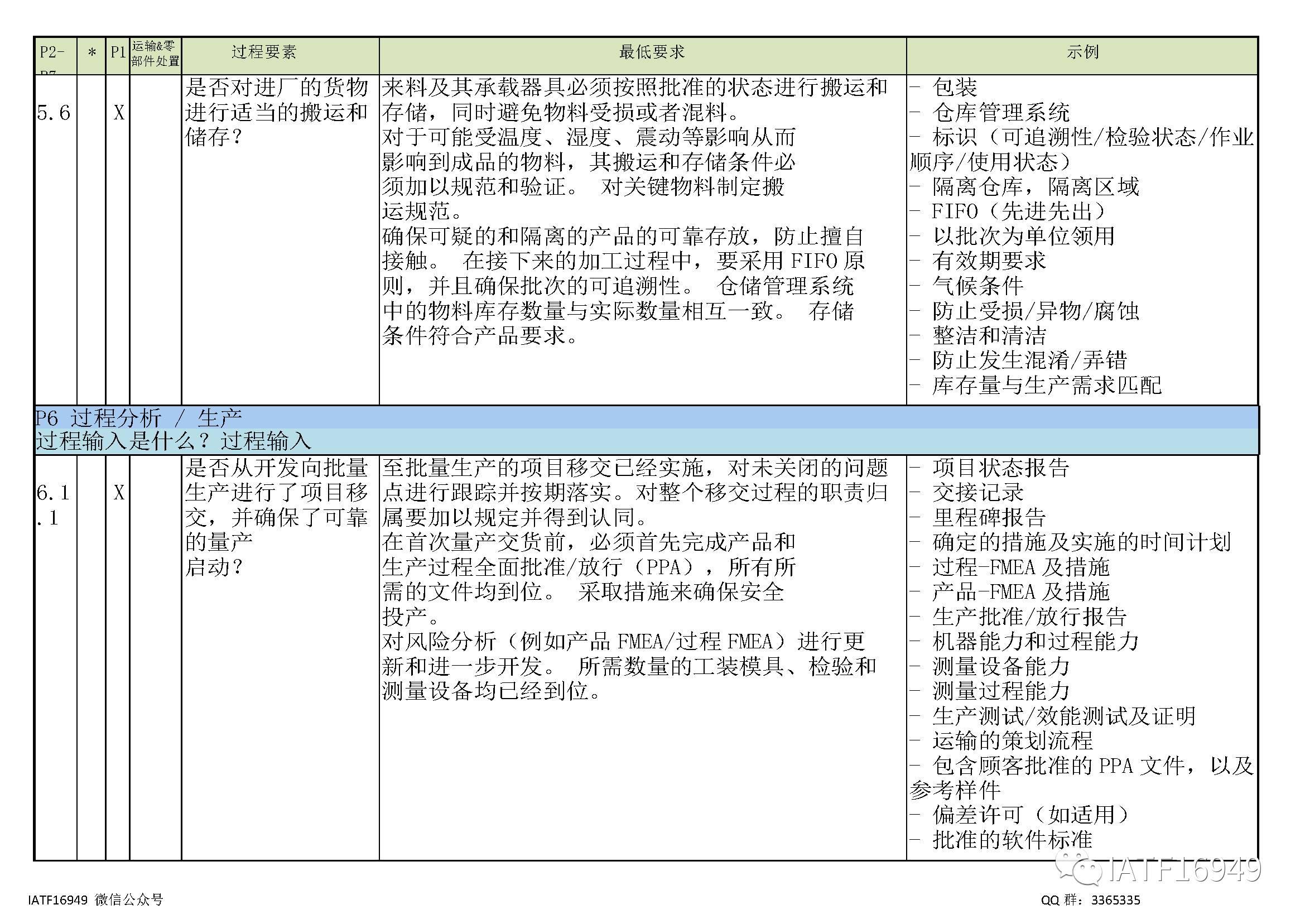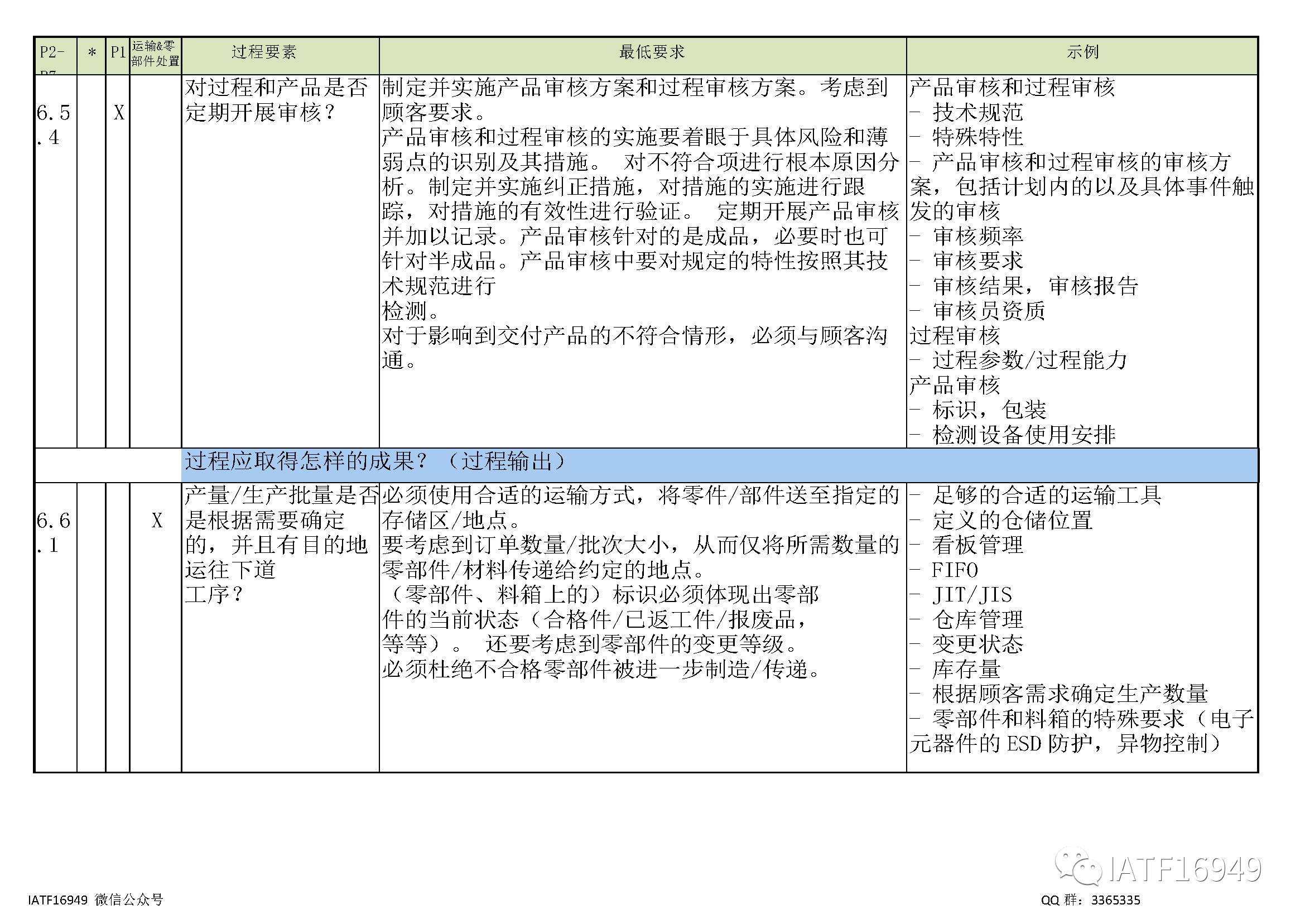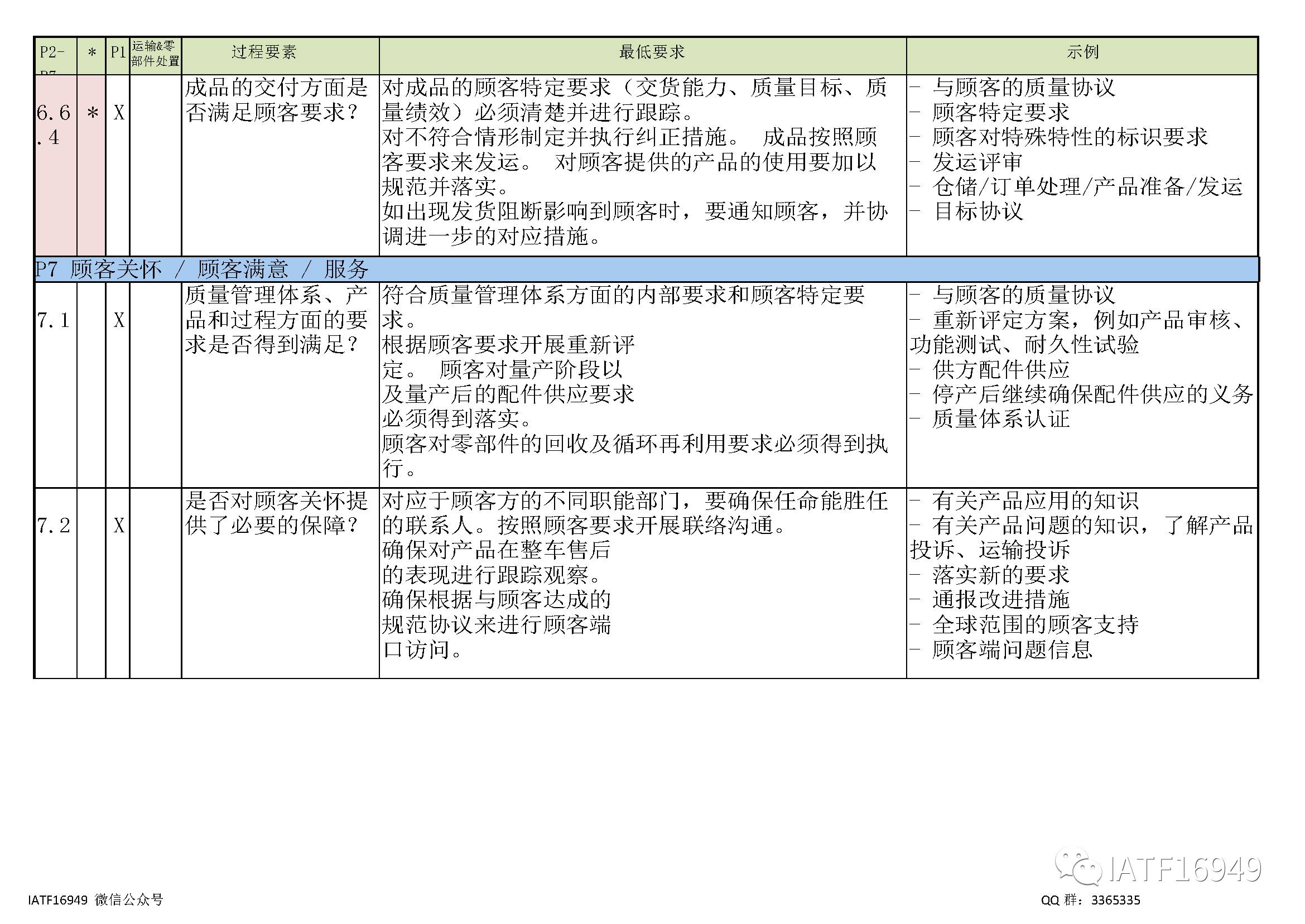 部分條款的順序/內容做了調整,例如:原P6.2.3(設備能力要求)變為物質資源P6.4.1,原P7.4(0 公里問題)和原P7.5(0公里后)作了合并,往顧客端發運從P7移到過程輸出P6.6.4,P6.3.X條款順序作了調整…