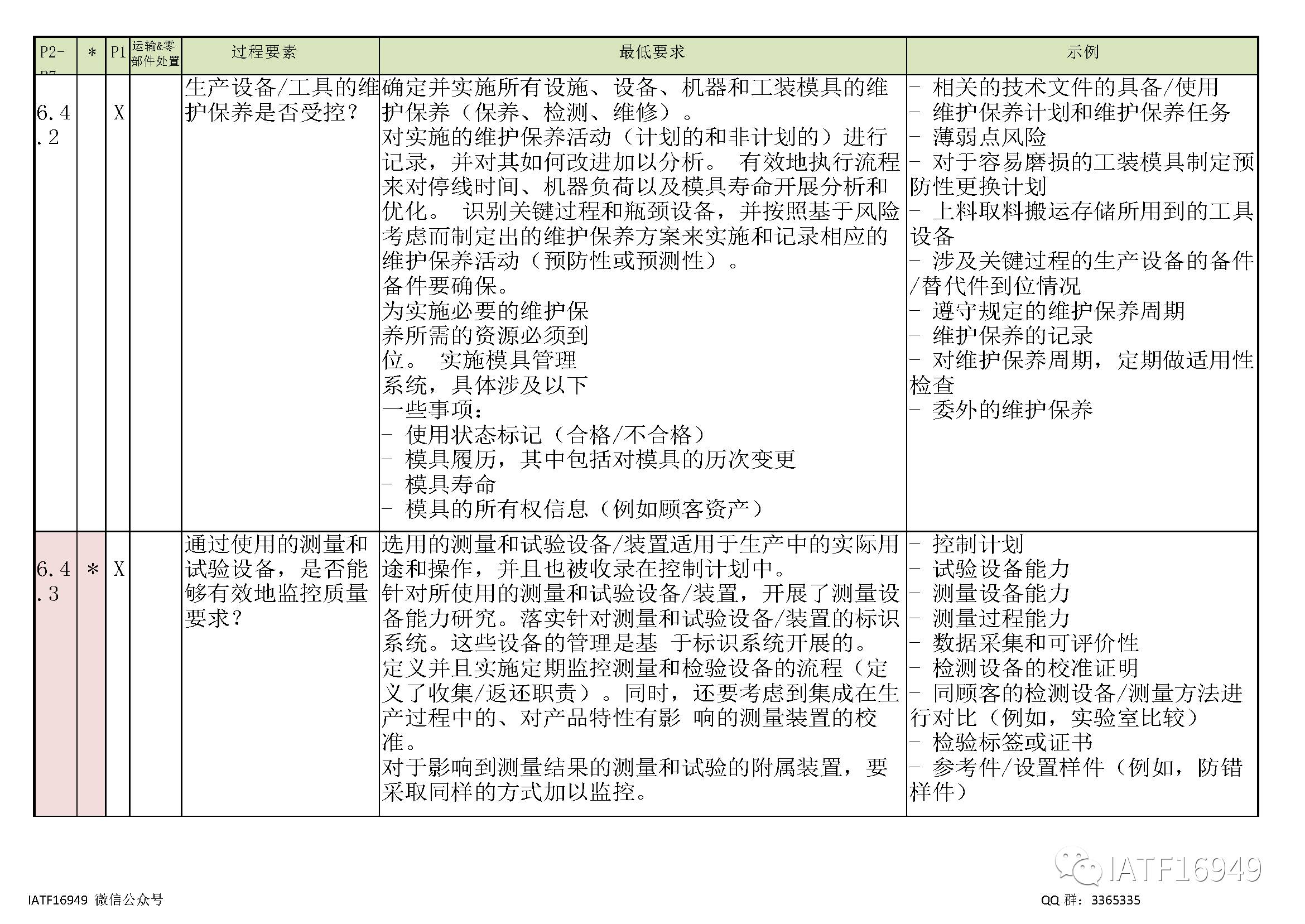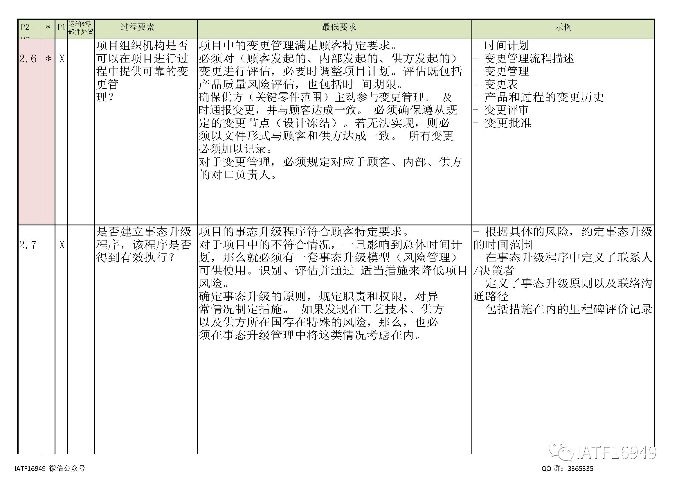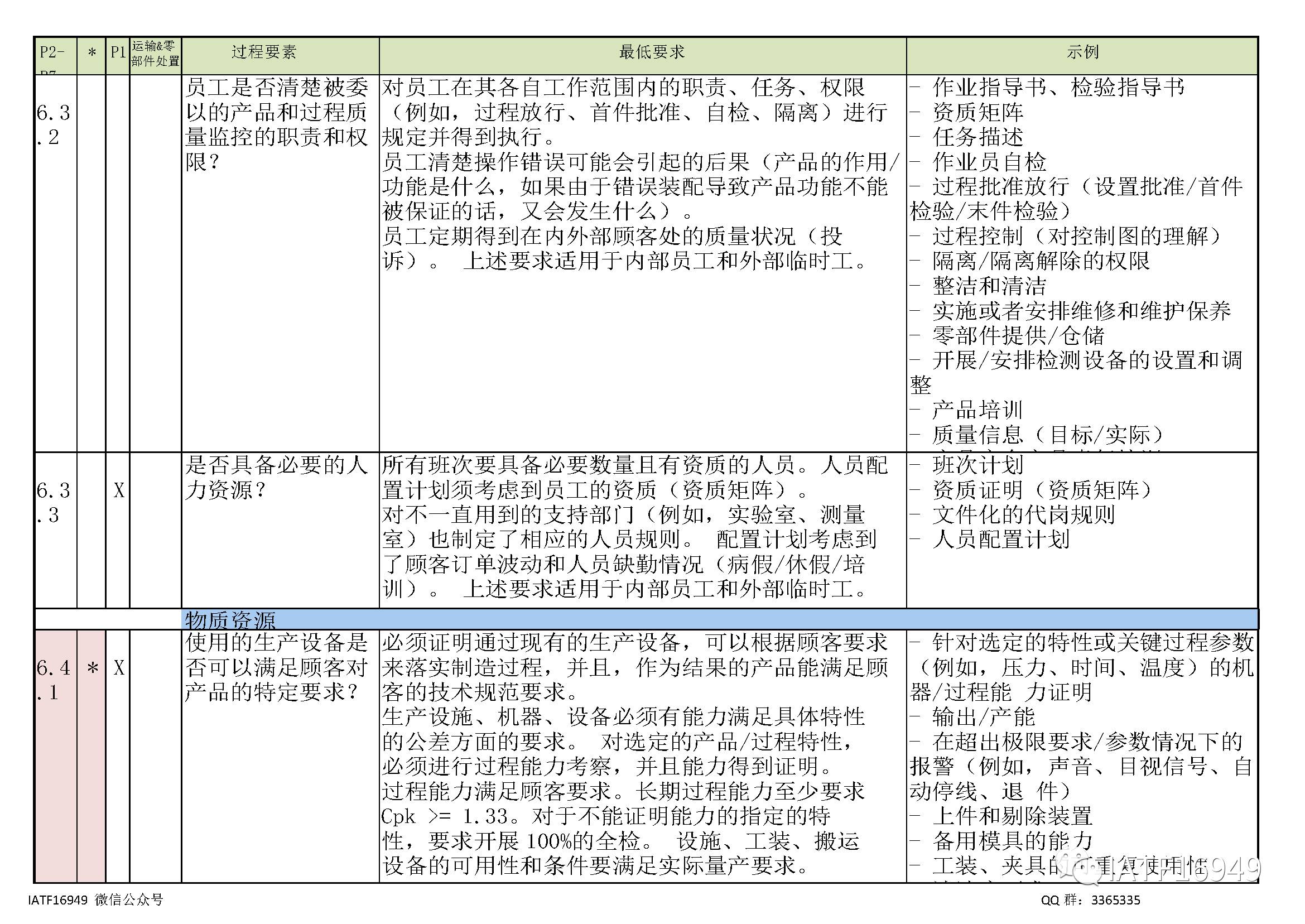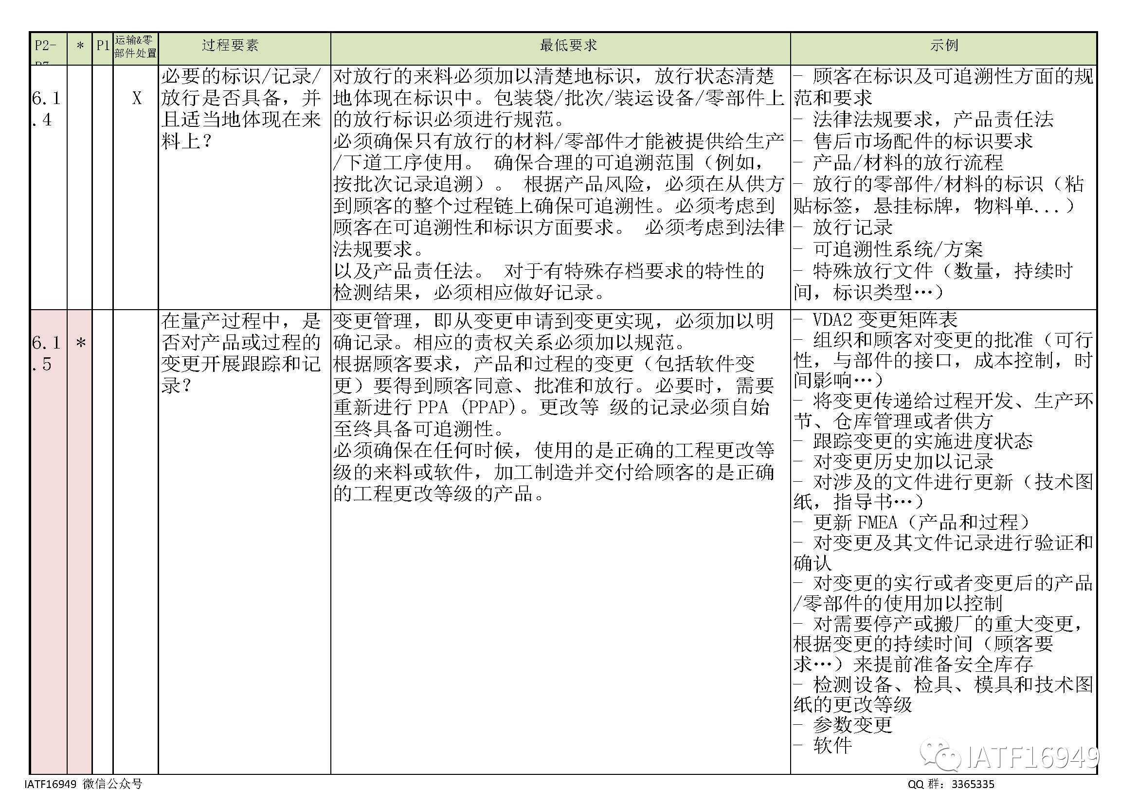 部分條款的順序/內容做了調整,例如:原P6.2.3(設備能力要求)變為物質資源P6.4.1,原P7.4(0 公里問題)和原P7.5(0公里后)作了合并,往顧客端發運從P7移到過程輸出P6.6.4,P6.3.X條款順序作了調整…